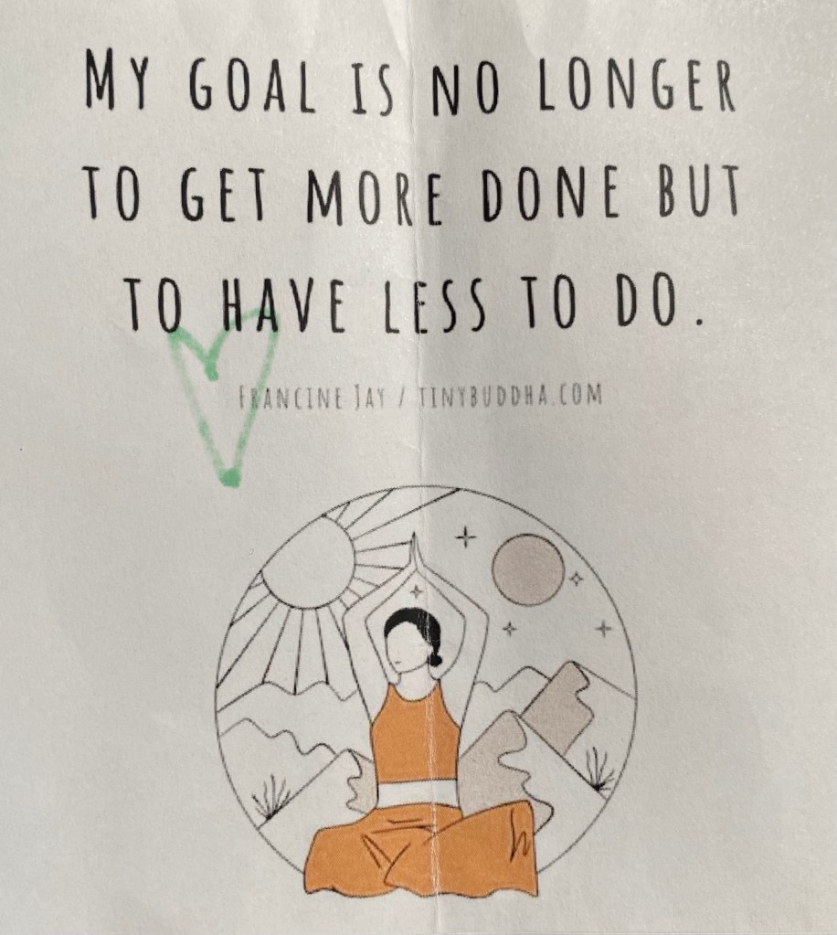 It’s about a fundamental change in mindset. I have to think more about what I really want to be doing with my time, not what I think I should be doing with my time. At yoga this week I received this affirmation. It is quite fitting don’t you think?
